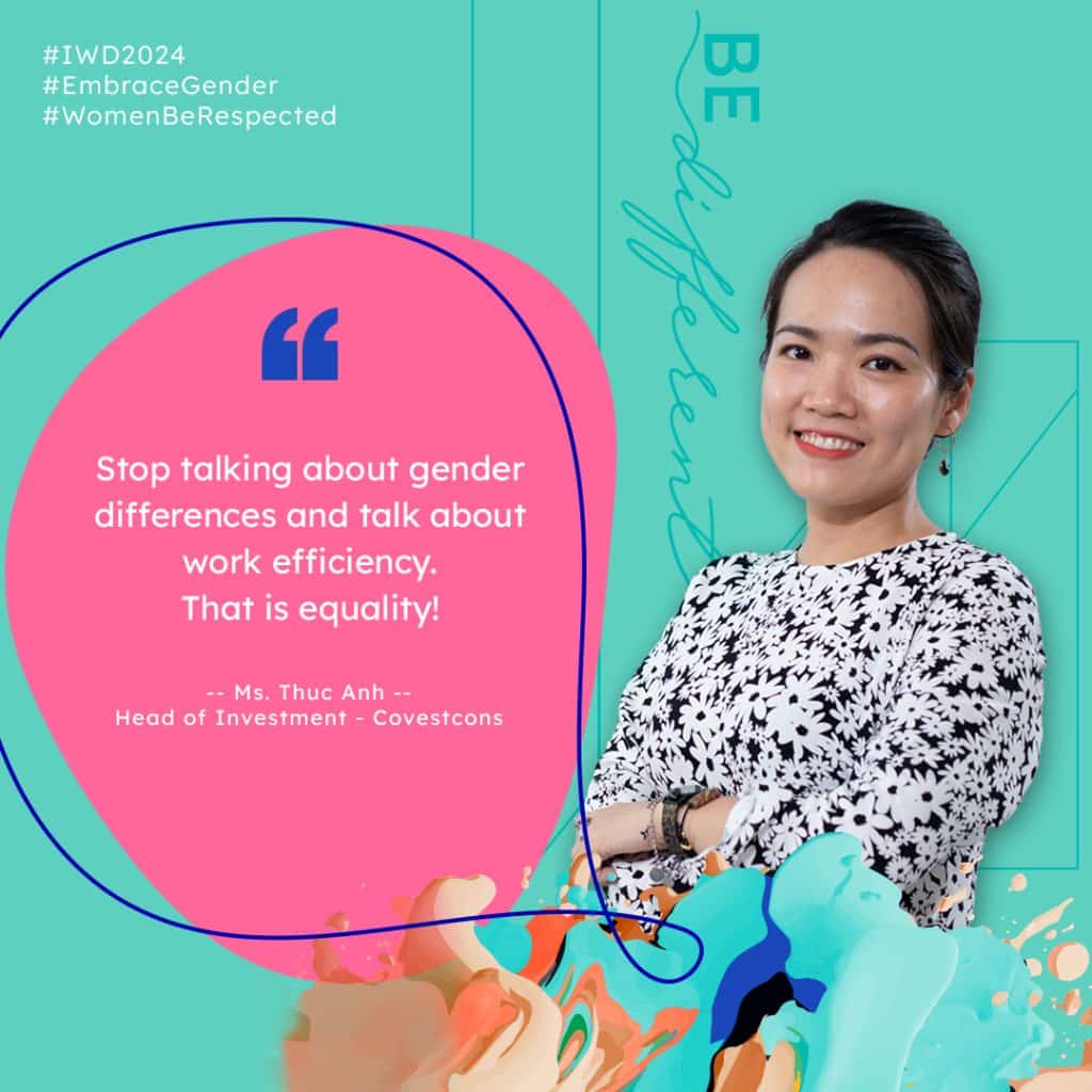 Ms. Nguyen Tran Thuc Anh – Head of the Board of Investment: Stereotypes are nothing more than a comparison of “gender power”. In a field like construction, if there is something that needs to change, I think it would be “equality in mindset“. Stop talking about gender differences and talk about work efficiency. That is equality!