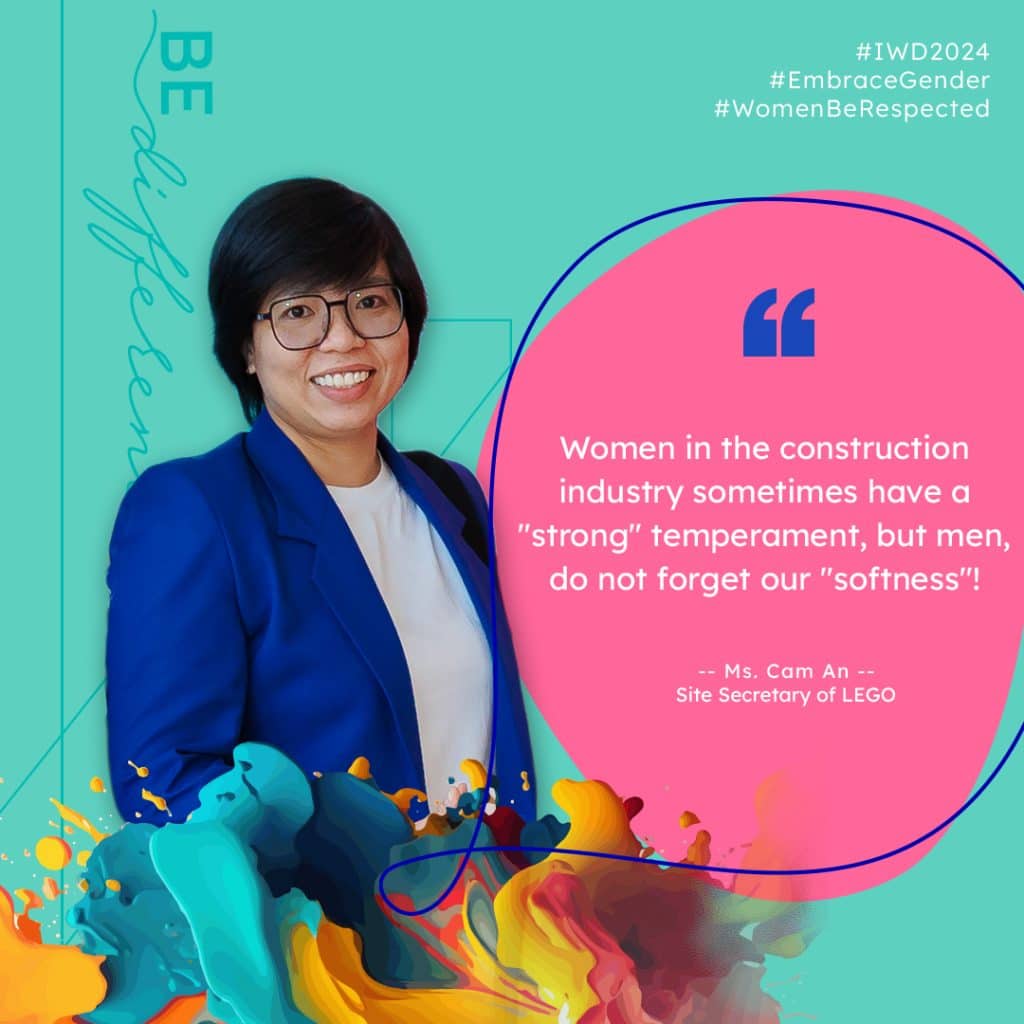 Ms. Dao Cam An – Site Secretary of LEGO: On a project where partners and customers come from many different countries, the issue of gender equality is always raised. However, women in the construction industry sometimes have a “strong” temperament, but men, do not forget our “softness”!