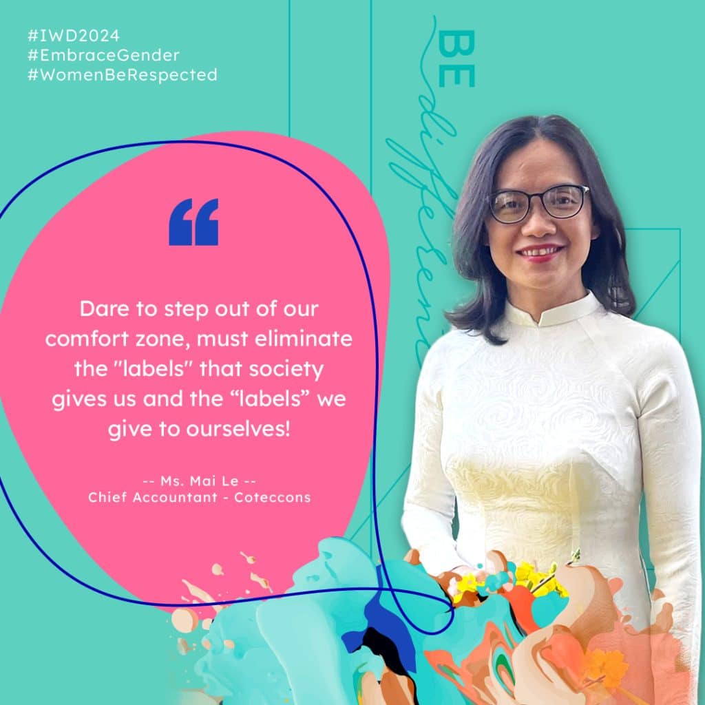 Ms. Cao Thi Mai Le – Chief Accountant of Coteccons: Dare to step out of our comfort zone, must eliminate the “labels” that society gives us and the “labels” we give to ourselves! Women do not need to think about where and who we will work with. Nurture your ambition and make it into your motivation. That is all!