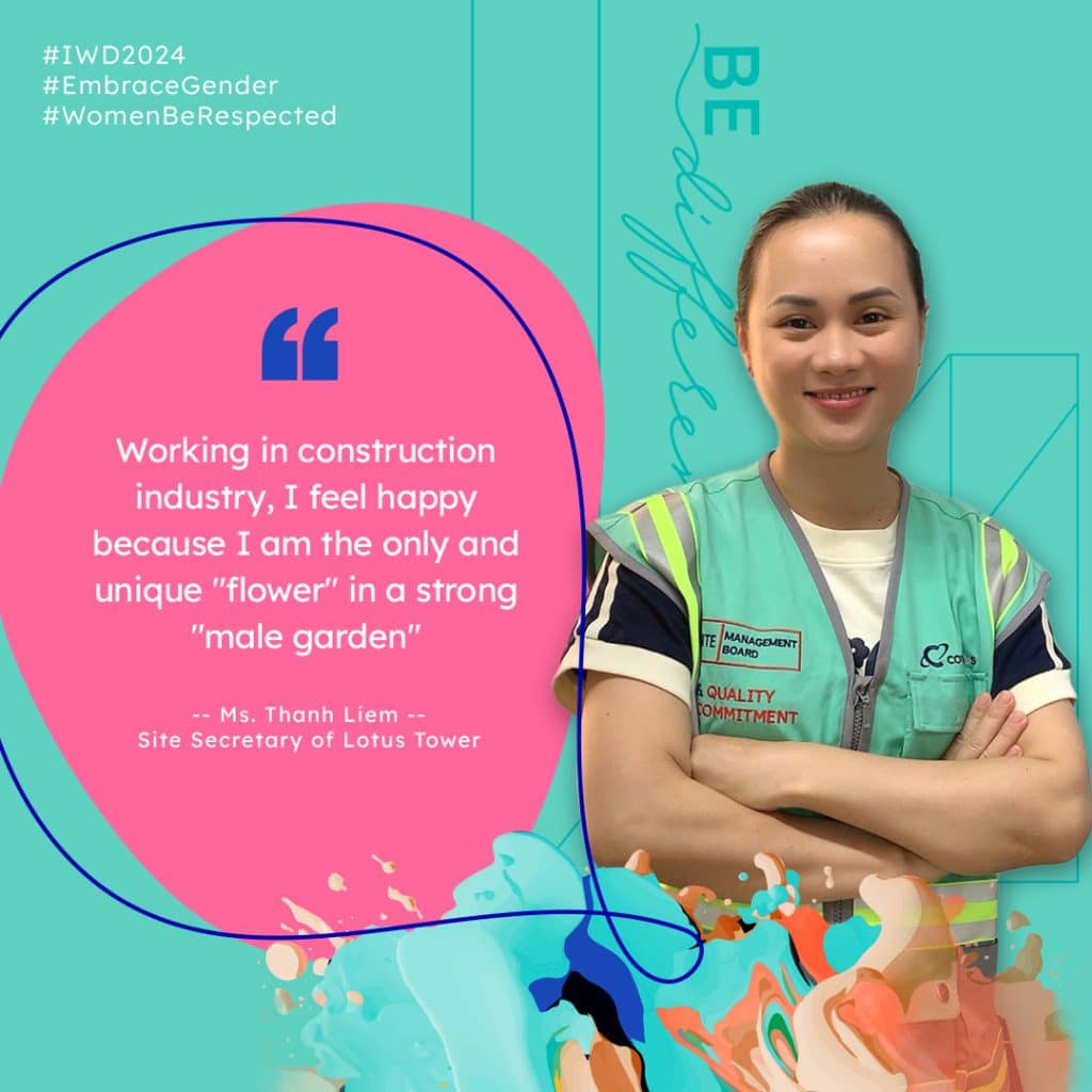 Ms. Dao Cam An – Site Secretary of LEGO: People are always skeptical when I say I am working in the construction industry. The stereotype is: “The construction industry is only for men; weak women cannot do it”.