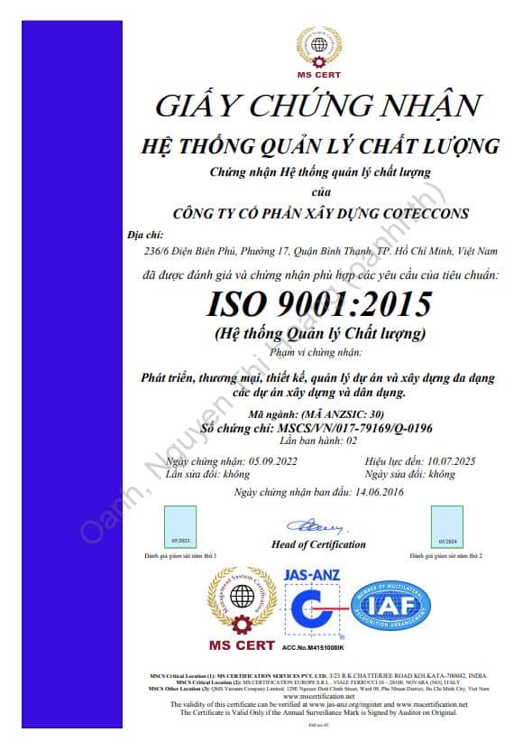 Được chứng nhận theo tiêu chuẩn quản lý chất lượng mới nhất, ISO 9001: 2015.
