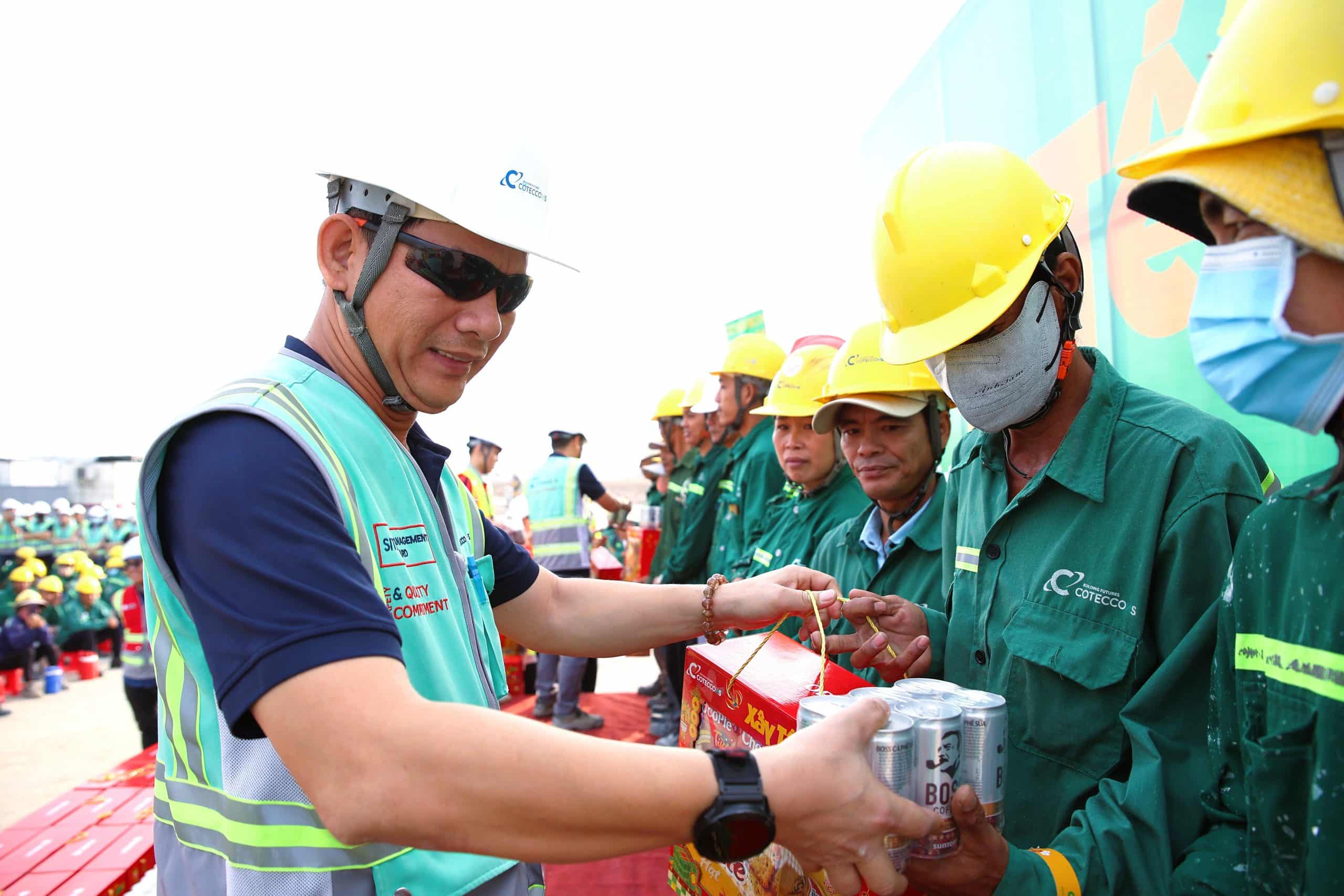 Đại diện Coteccons trao quà tết đến người công nhân tại mỗi công trường.
