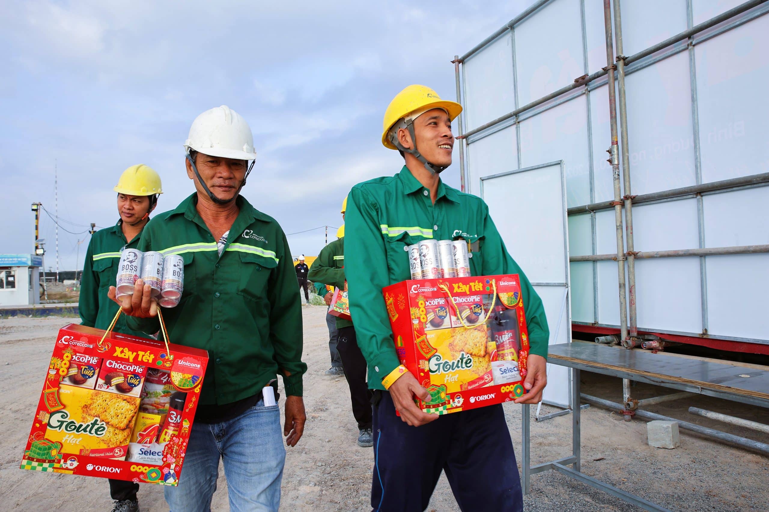 Cứ mỗi dịp Xuân về, trên khắp các công trường Coteccons, ta có thể dễ dàng bắt gặp hình ảnh người công nhân với những phần quà Xây Tết trên tay và nụ cười rạng rỡ trên môi.