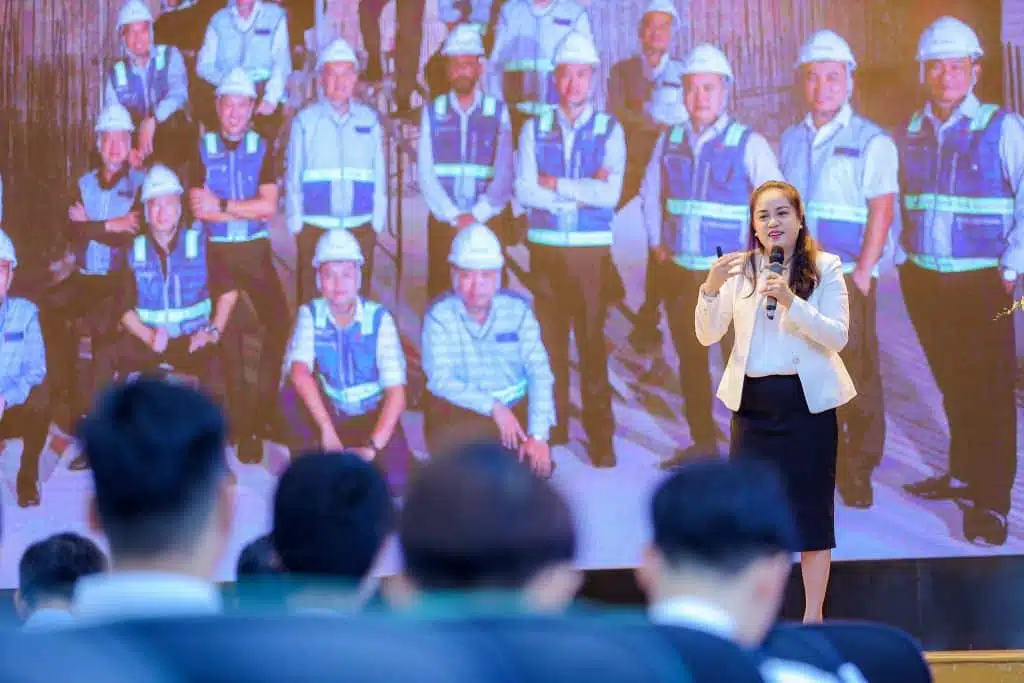 Bà Phạm Thị Bích Ngọc – Phó Tổng Giám đốc Công ty Coteccons trình bày đến đại diện nhà trường, khoa và các bạn sinh viên tổng quan giới thiệu về công ty, cơ hội việc làm, cơ hội đào tạo và lộ trình phát triển của Coteccons.
