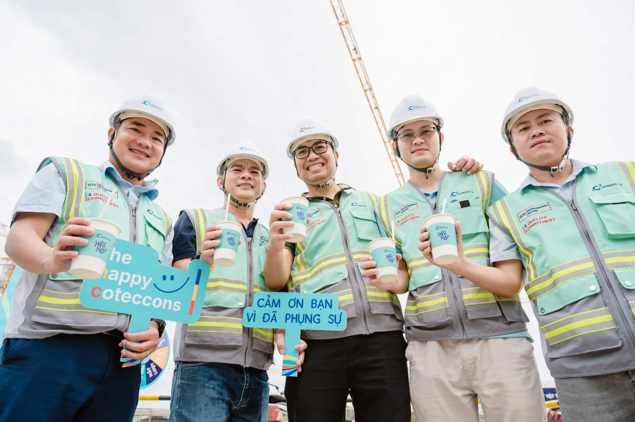 Sau bao ngày úp mở, hôm nay (21/8), đoàn xe xanh ngọc Happy Coffee Truck đã chính thức lăn bánh đến 21 công trường khắp 3 miền Tổ quốc và tòa nhà văn phòng Coteccons. Hơn 10.000 ly cà phê, trà mát cùng bánh ngon đã “vượt nắng thắng mưa” trao tận tay đội ngũ kỹ sư, công nhân nơi tuyến đầu; Ban Quản lý, Chủ đầu tư, các Đơn vị tư vấn đã đồng hành trên công trường; và cả những nhân viên văn phòng luôn vững vàng nơi hậu phương.