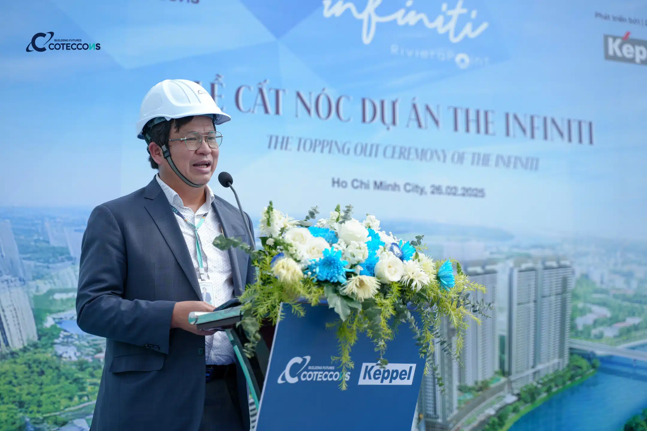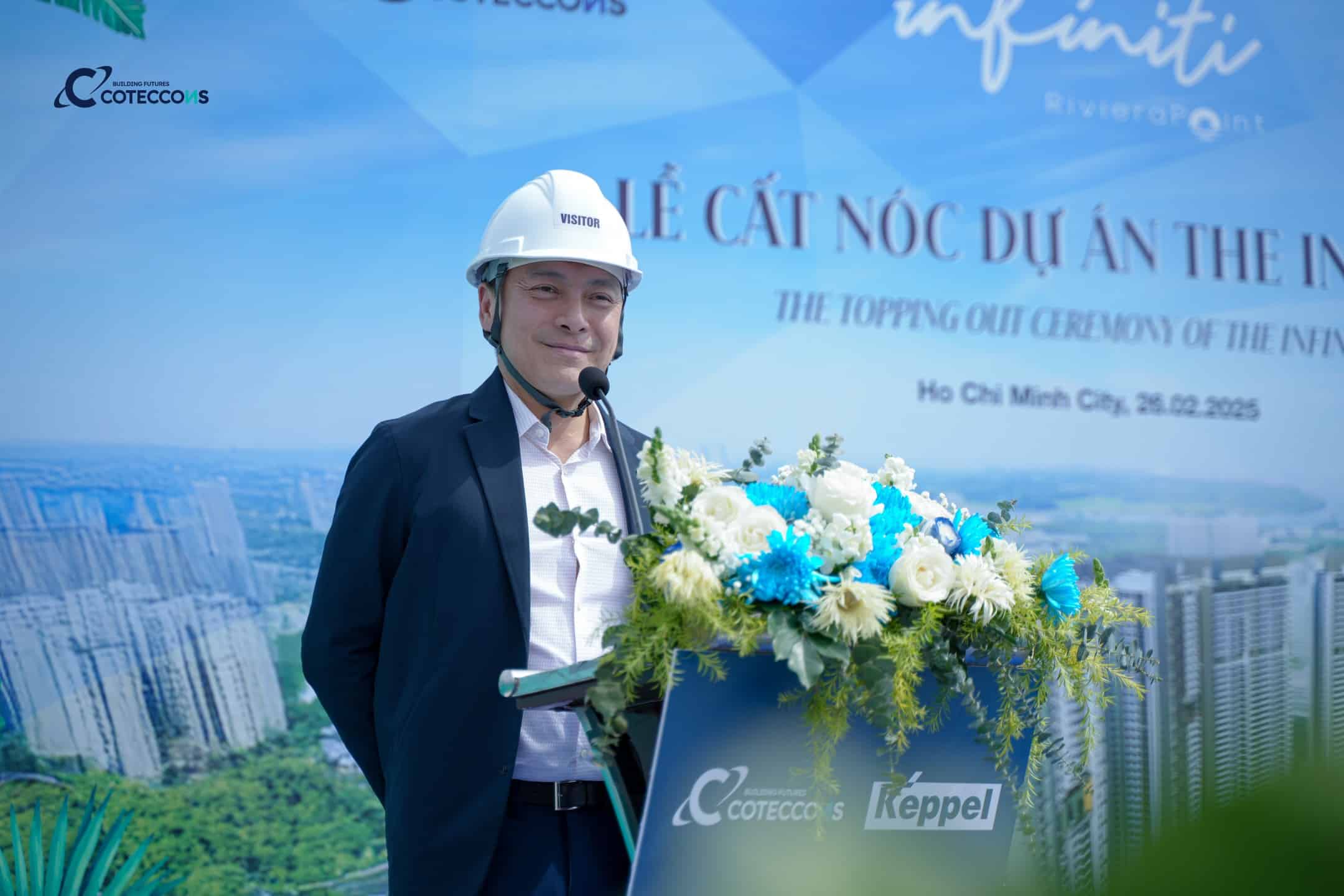 Phát biểu tại lễ cất nóc, đại diện Đơn vị phát trển dự án Ông Louis Lim, Giám đốc điều hành, Khối Bất động sản, Keppel, chia sẻ: “Keppel là doanh nghiệp điều hành và quản lý tài sản trên toàn cầu, có chuyên môn sâu rộng với các giải pháp bền vững trong lĩnh vực hạ tầng, bất động sản và kết nối. Việt Nam là một trong những thị trường trọng điểm của Keppel. Hơn ba thập kỷ qua, Keppel cam kết đóng góp cho sự phát triển đô thị của Việt Nam thông qua các dự án chất lượng, chỉn chu và bền vững. The Infiniti chính là minh chứng cho cam kết này….