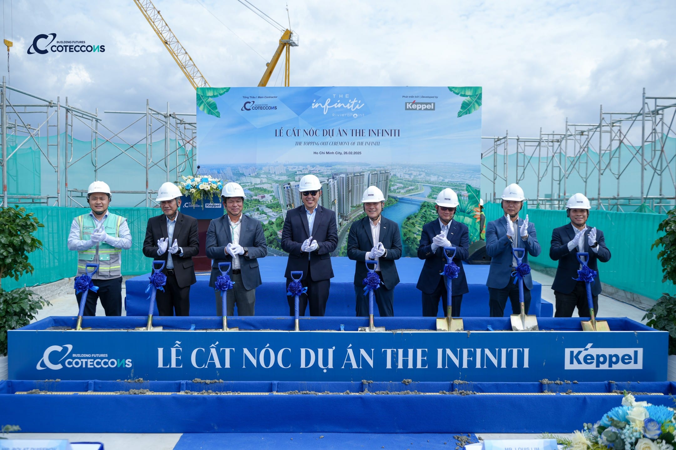 Thành phố Hồ Chí Minh, ngày 26/02/2025, Coteccons đã chính thức cất nóc cất nóc dự án The Infiniti, dự án nhà ở nổi bật của Keppel tại Quận 7, TP HCM. Tham dự lễ cất nóc có đại diện Đơn vị phát triển dự án Keppel, Ban lãnh đạo công ty Coteccons, Tư vấn giám sát, Ban chỉ huy dự án cùng các đối tác Nhà thầu phụ, Nhà cung cấp tại dự án.
