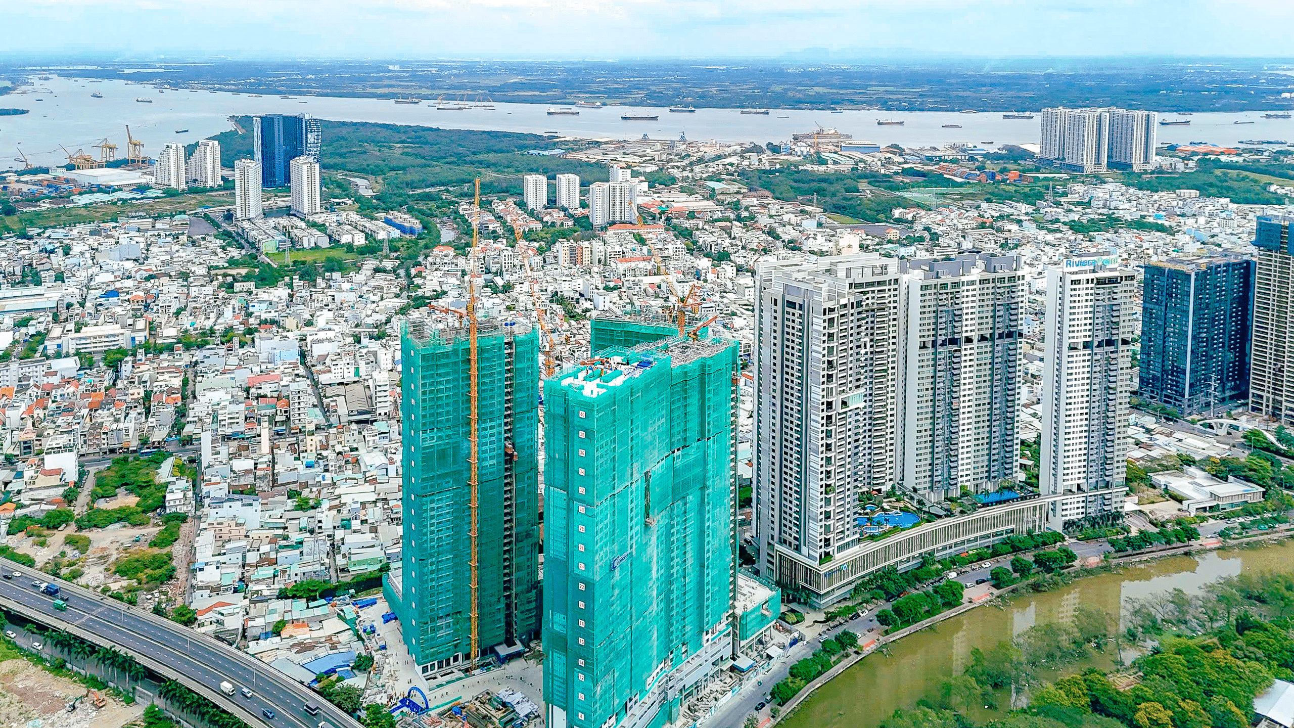 Toàn cảnh dự án The Infiniti do Coteccons xây dựng toạ lạc tại vị trí đắc địa bên sông Cả Cấm, Quận 7, TP.HCM