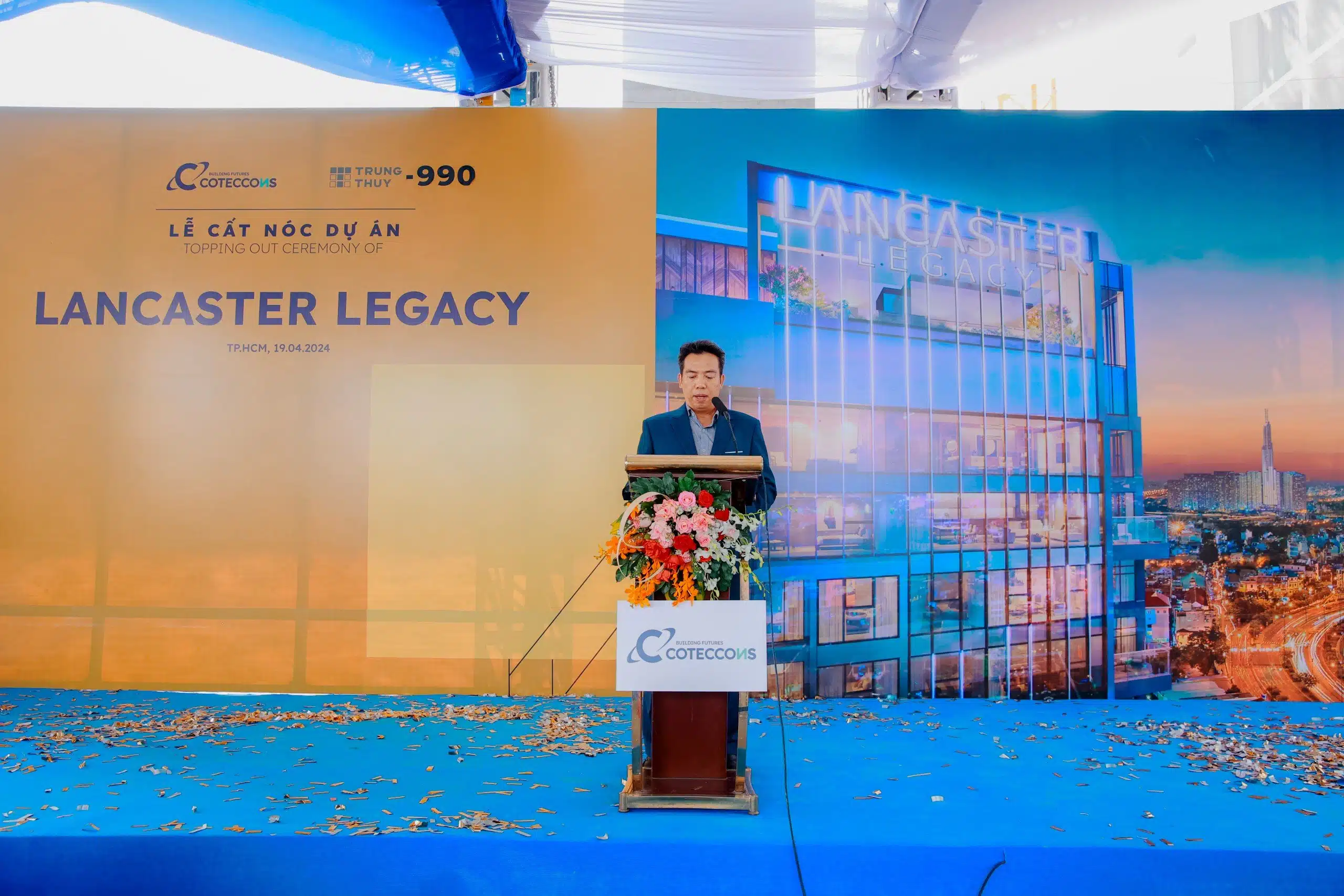 Phát biểu tại lễ cất nóc, đại diện Đơn vị phát trển dự án bà Dương Thanh Thủy, Phó Chủ tịch HĐQT Tập đoàn Trung Thủy chia sẻ: “Không bao lâu nữa, chỉ trong năm 2025, chúng ta sẽ chứng kiến công trình được đưa vào sử dụng, đánh dấu sự thay đổi toàn bộ của khu vực này. Một trung tâm thương mại sang trọng, những tòa căn hộ cao cấp với chất lượng quản lý vận hành được phát triển theo tiêu chuẩn của khách sạn có gắn sao. Tất cả được kiến tạo để đáp ứng tốt nhất những yêu cầu của khách hàng kỹ tính, khách hàng phải có yêu cầu cao nhất. Lancaster Legacy cũng sẽ là nơi tất cả chúng ta mong muốn trở về nhà sau một ngày làm việc căng thẳng và mệt mỏi. Với mong muốn được góp phần tạo ra sản phẩm tốt cho xã hội và tất cả nhu cầu của khách hàng, chúng tôi khẳng định rằng chúng tôi đã, đang và sẽ tiếp tục đưa ra thị trường các sản phẩm được chăm chút, may đo chỉn chu để quý khách hàng hài lòng.”