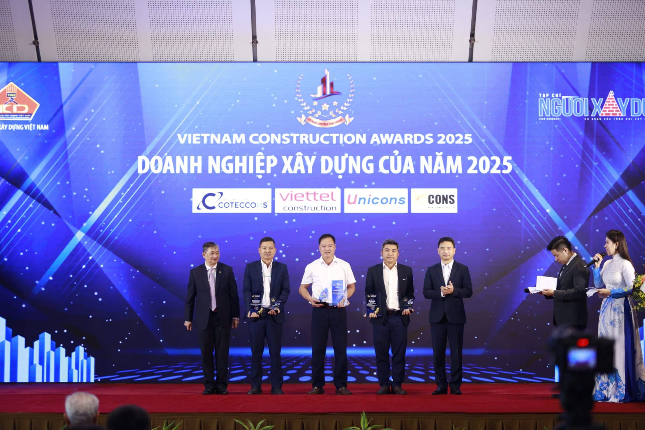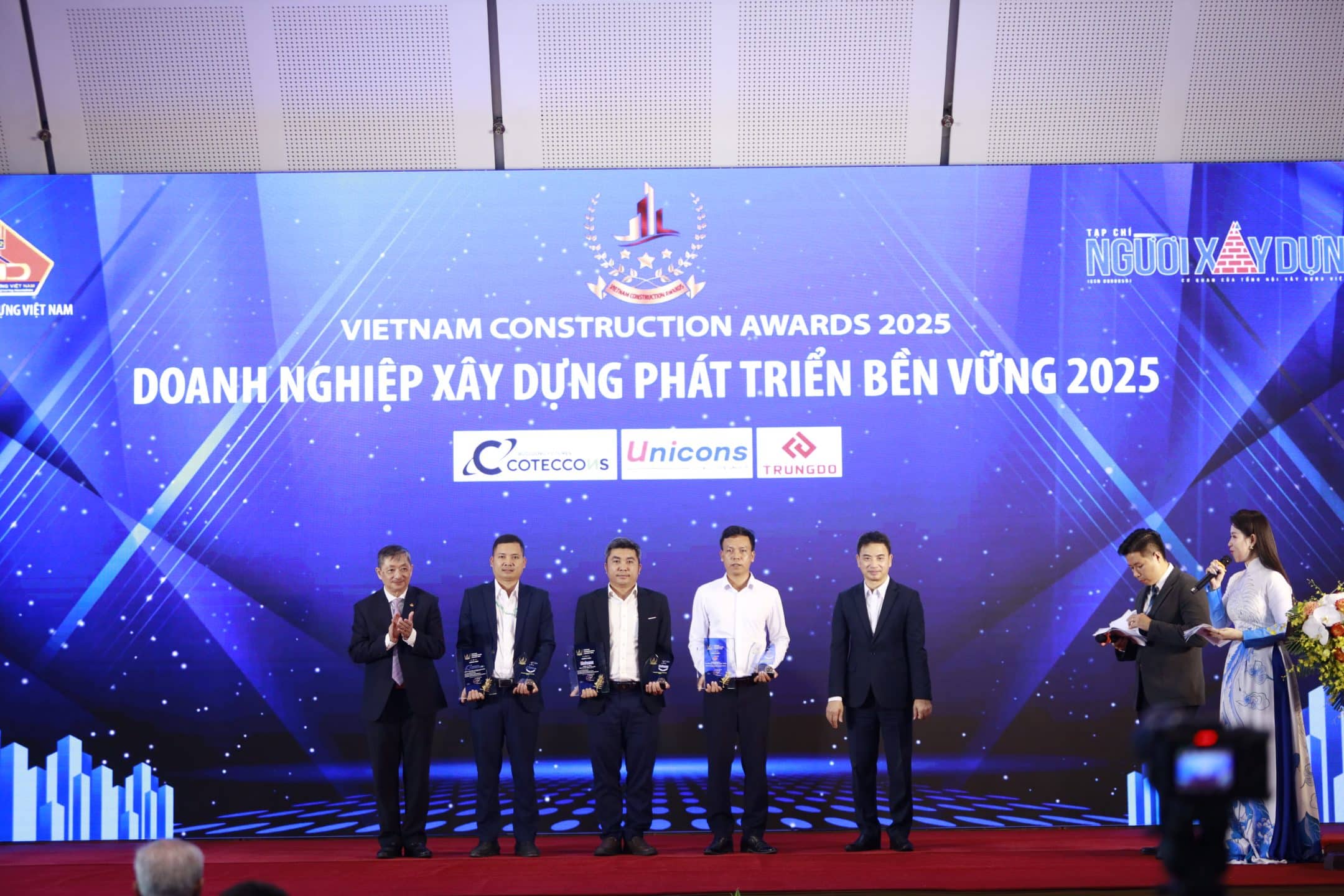 Ngày 07/10/2025, tại Trung tâm Hội nghị Quốc gia, Coteccons và Unicons đã được xướng tên ở ba hạng mục quan trọng của Vietnam Construction Awards, ghi nhận những đóng góp của doanh nghiệp trên thị trường xây dựng Việt Nam.