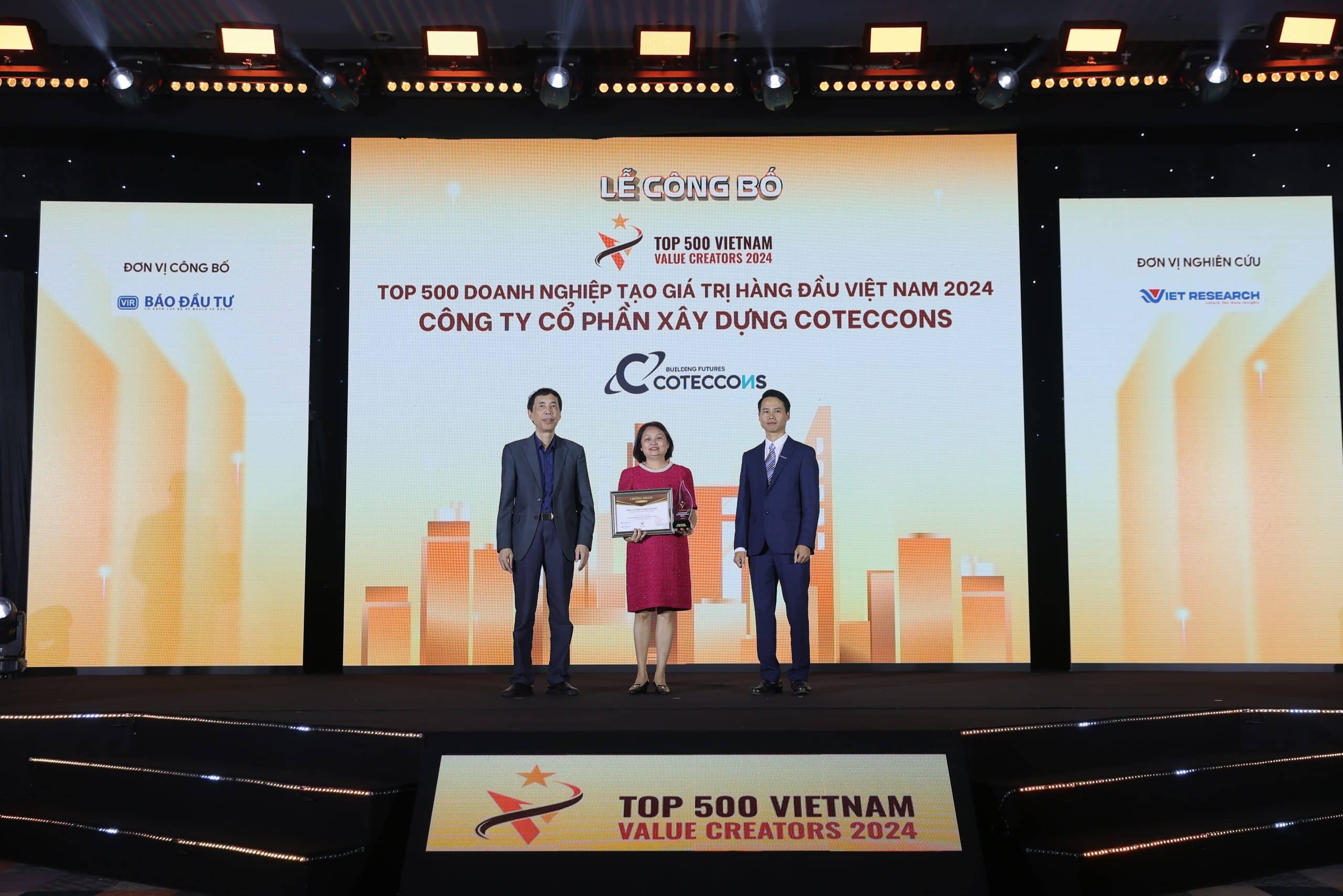 - Top 500 Doanh nghiệp tạo ra giá trị hàng đầu Việt Nam (Value500): Coteccons xếp thứ 120/500 doanh nghiệp.