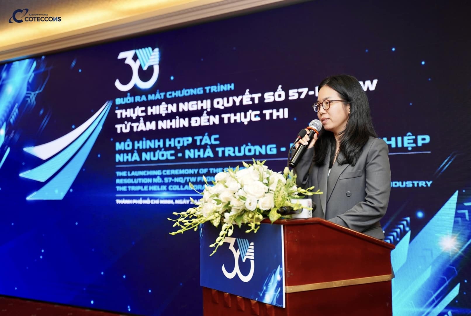 “Chúng tôi tin rằng tri thức chính là cách con người giao tiếp với tương lai. Và những công trình mà Coteccons kiến tạo – tồn tại hàng trăm năm – cũng là cách chúng tôi đối thoại với thế hệ mai sau. Trong hệ sinh thái đổi mới sáng tạo, doanh nghiệp đóng vai trò trung tâm. Với trách nhiệm đó, Coteccons cam kết đồng hành, chuyển đổi và ứng dụng trí tuệ nhân tạo (AI) vào thực tiễn – không chỉ để nâng cao năng lực cạnh tranh, mà còn để tạo ra giá trị bền vững cho xã hội”, bà Trang nhấn mạnh.