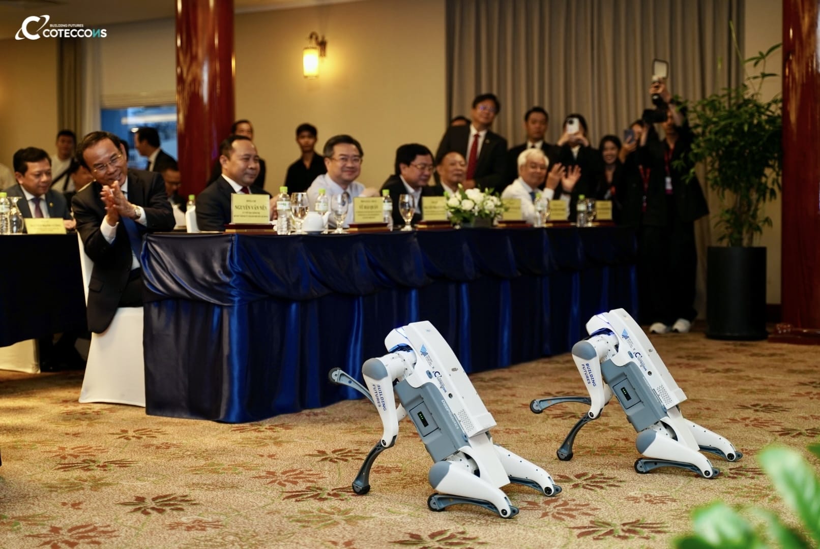 Tại lễ ký kết, ông Bolat Duisenov – Chủ tịch HĐQT và bà Nguyễn Trình Thùy Trang – Phó Tổng giám đốc Coteccons đã giới thiệu hai robot tích hợp trí tuệ nhân tạo (AI). Những robot này, sau khi được nghiên cứu và huấn luyện bởi nhóm kỹ sư và sinh viên, sẽ được triển khai tại công trường để hỗ trợ công tác quản lý an toàn, kiểm soát đầu vào và cảnh báo rủi ro – thể hiện rõ định hướng ứng dụng công nghệ hiện đại vào thực tiễn xây dựng.