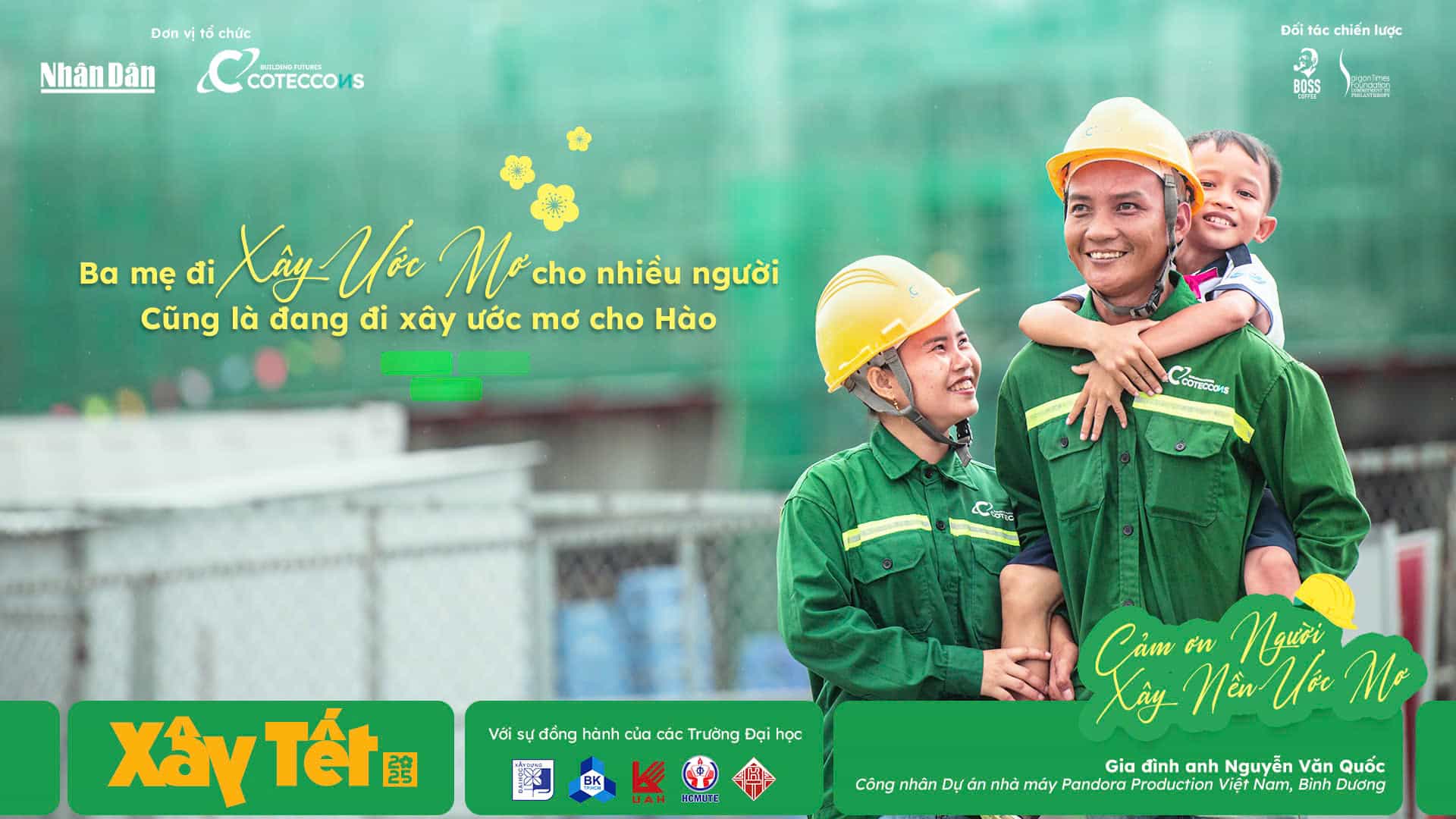 Các sự kiện thuộc khuôn khổ Xây Tết 2025 sẽ tiếp tục diễn ra đến tháng 01/2025, mang hơi thở mùa xuân và những phần quà ý nghĩa đến các công trường từ Bắc – Trung – Nam. Hãy cùng chờ đón hành trình tiếp theo với sự chung tay của BOSS Cà Phê và các đối tác, để mỗi người lao động đều cảm nhận được một cái Tết trọn vẹn, thăng hoa.