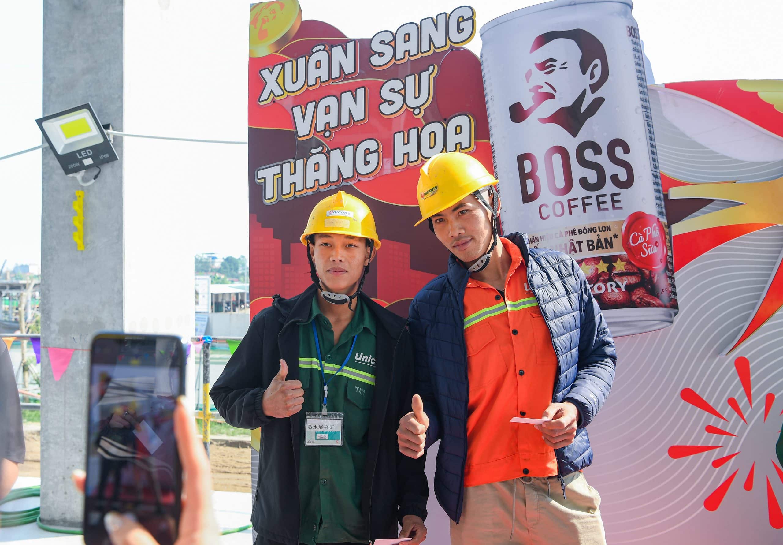 Tại các công trường trọng điểm trải dài nhiều tỉnh thành của Coteccons, Unicons, hình ảnh những công nhân mỉm cười rạng rỡ, tay cầm lon BOSS Cà Phê, dành ra chút thời gian thưởng thức thức uống thơm ngon này đã khắc sâu dấu ấn của nhãn hàng. Không những mang đến những lon cà phê thơm ngon ngọt béo mát lạnh, gian hàng của BOSS cũng thu hút đông đảo anh chị em công nhân với những trò chơi vui nhộn cùng những phần quà hấp dẫn, góp phần tăng thêm hứng khởi cũng như giúp anh chị em công nhân thêm phần thư giãn khi tham gia sự kiện.
