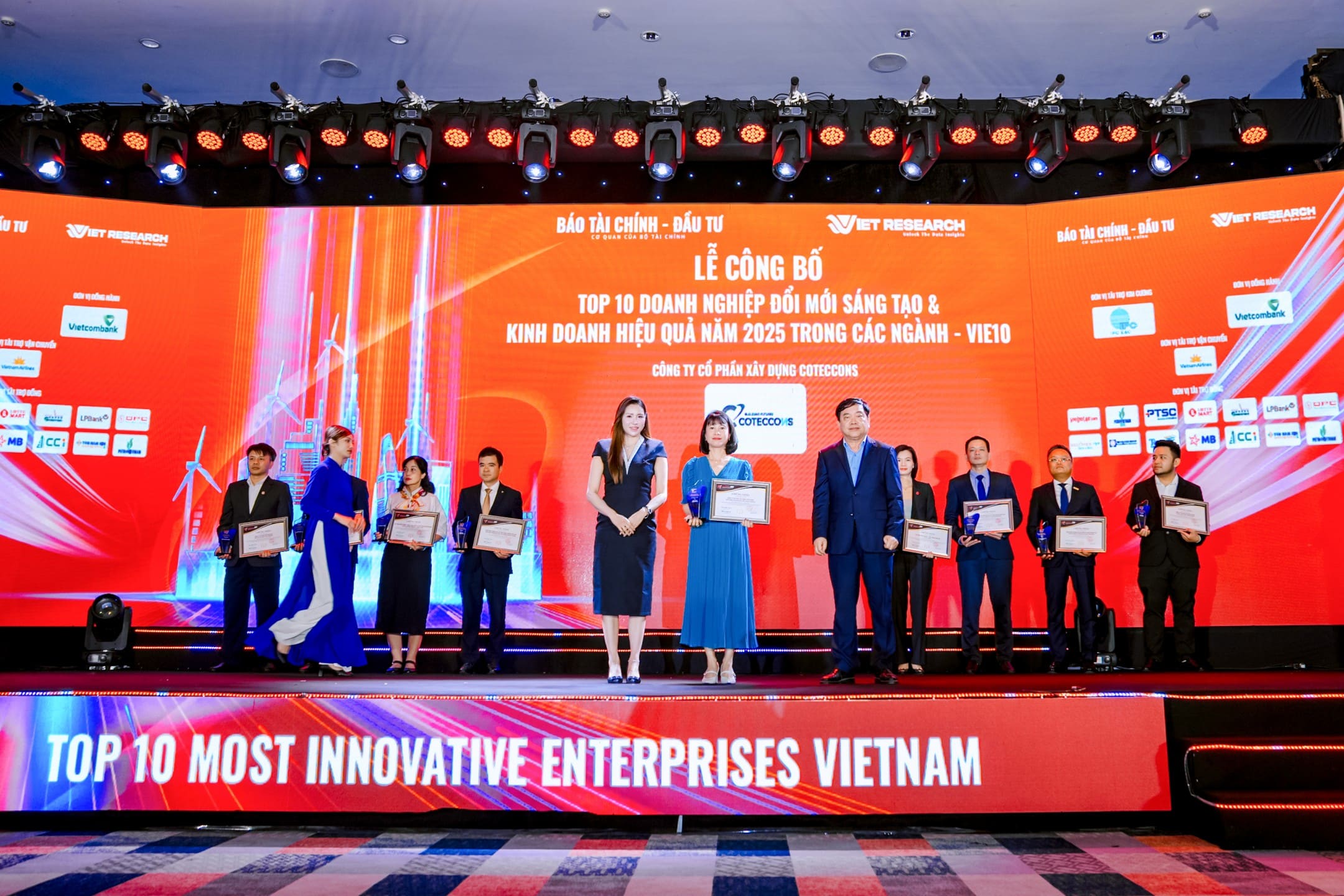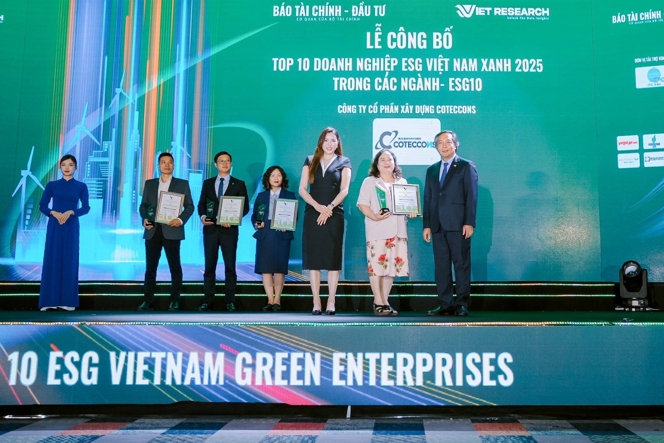 June 27, 2025 – Coteccons (Ticker: CTD) has been recognized with multiple prestigious accolades at the Most Innovative Enterprises and ESG Vietnam Green Enterprises Awards 2025, organized by Viet Research in collaboration with Vietnam Investment Review Newspaper (the official publication of the Ministry of Finance). The awards ceremony took place within the framework of the Vietnam Summit: Innovation for a Sustainable Future held in Hanoi.