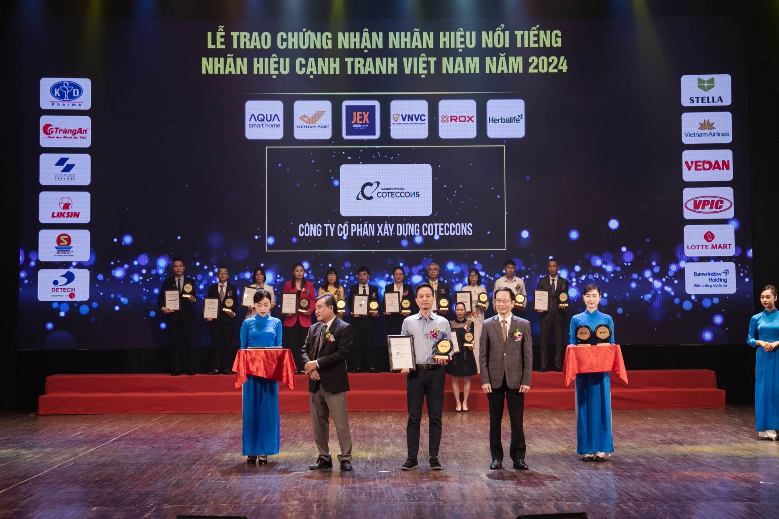 On July 31st, 2024, in Hanoi, the Vietnam Intellectual Property Association held the “Famous Brands – Vietnam Competitive Brands 2024” certification ceremony. Coteccons was proud to be recognized among the “Top 20 Famous Brands of Vietnam.”