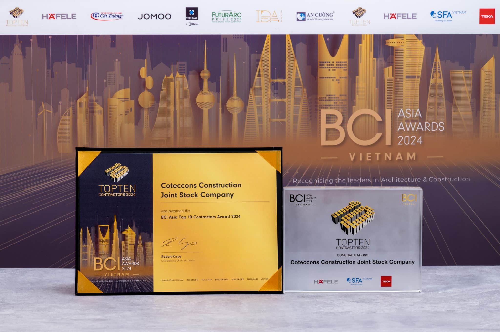 On May 31st, 2024, in Ho Chi Minh City, Coteccons and its subsidiary, Unicons, were honored with the prestigious Top 10 Contractors 2024 award by BCI Central. This marks the 19th year that BCI Central has recognized leading firms in the Architecture, Real Estate, and Construction industries across seven countries and regions in Asia, including Hong Kong (China), Indonesia, Malaysia, the Philippines, Singapore, Thailand, and Vietnam.