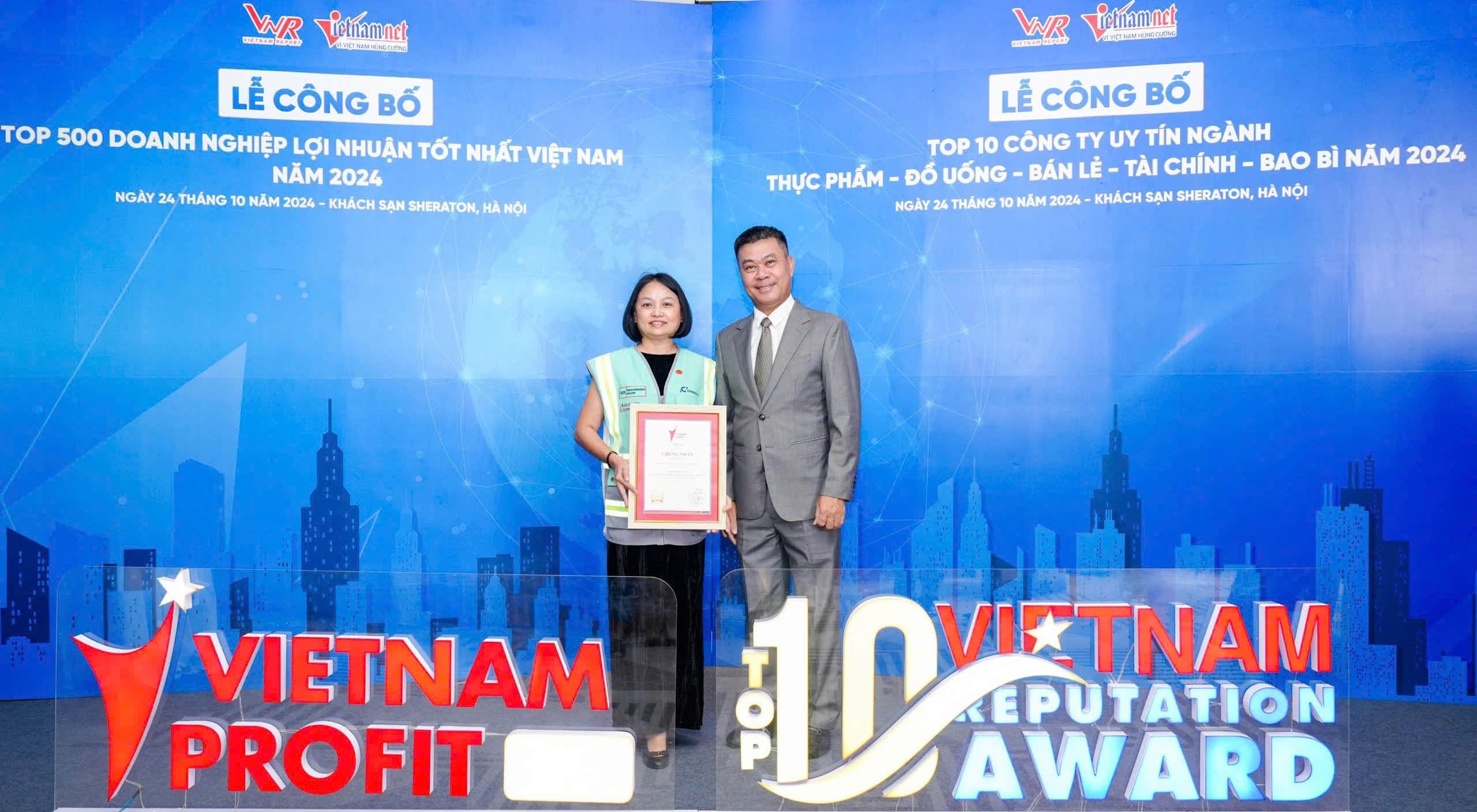 On the afternoon of October 24, 2024, at the Sheraton Hotel in Hanoi, Vietnam Report presented the PROFIT500 award, which recognizes the top 500 most profitable companies in Vietnam, to Coteccons (HoSE: CTD). With a profit exceeding VND 300 billion for the fiscal year 2024, and a compound annual growth rate (CAGR) of 20-30% over the past three years, Coteccons was also honored in the top 10 most profitable construction companies in Vietnam.