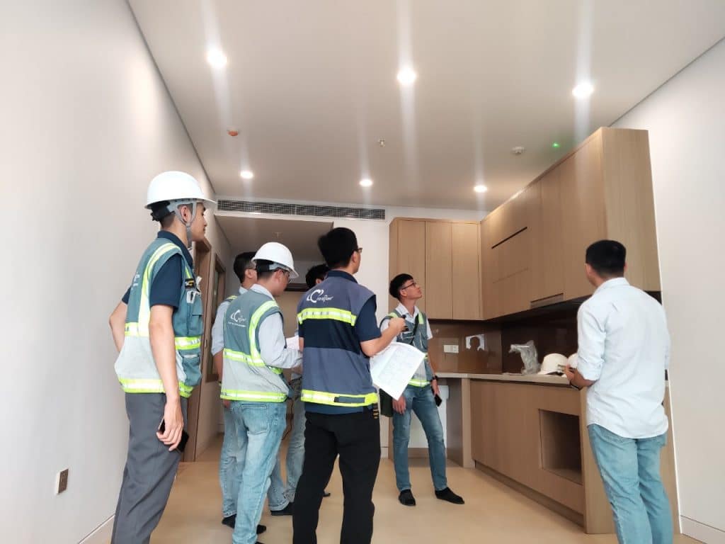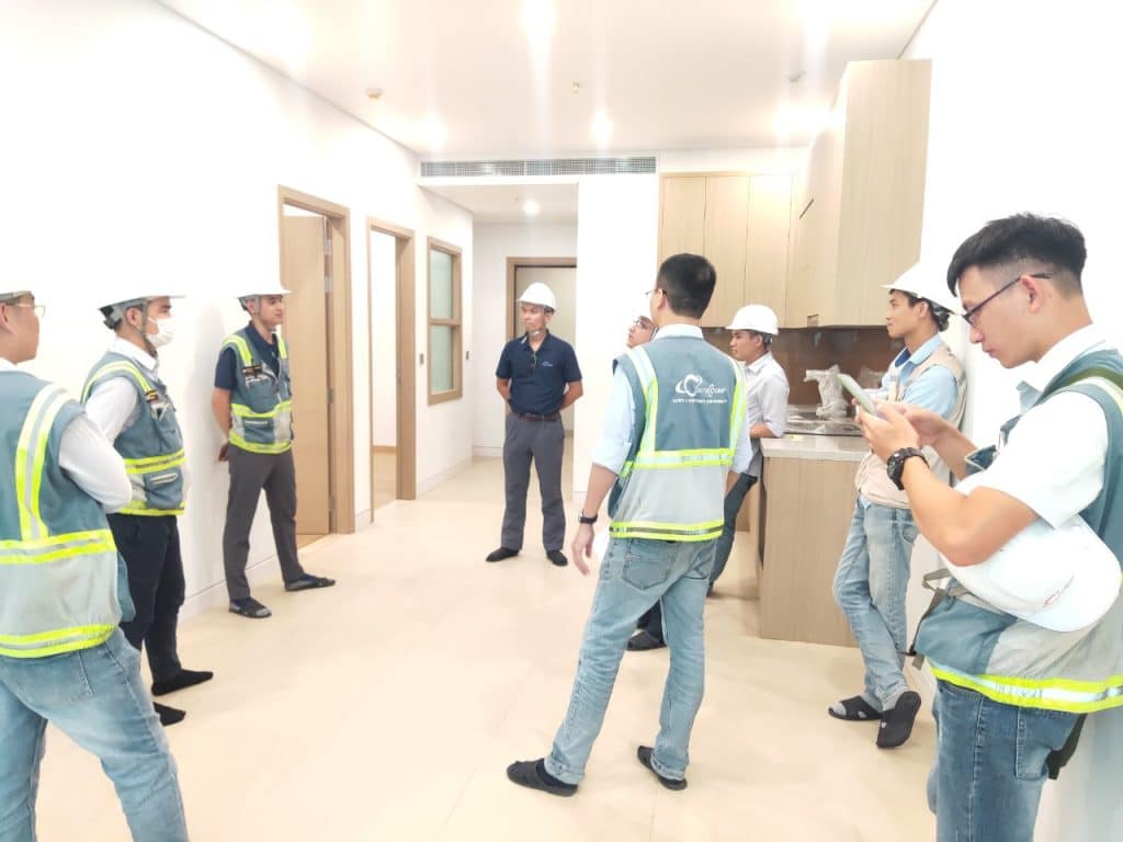 Anh Bùi Tấn Đạt cùng anh Việt – CHP và anh em BCH đi nghiệm thu tầng mẫu