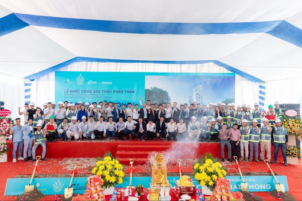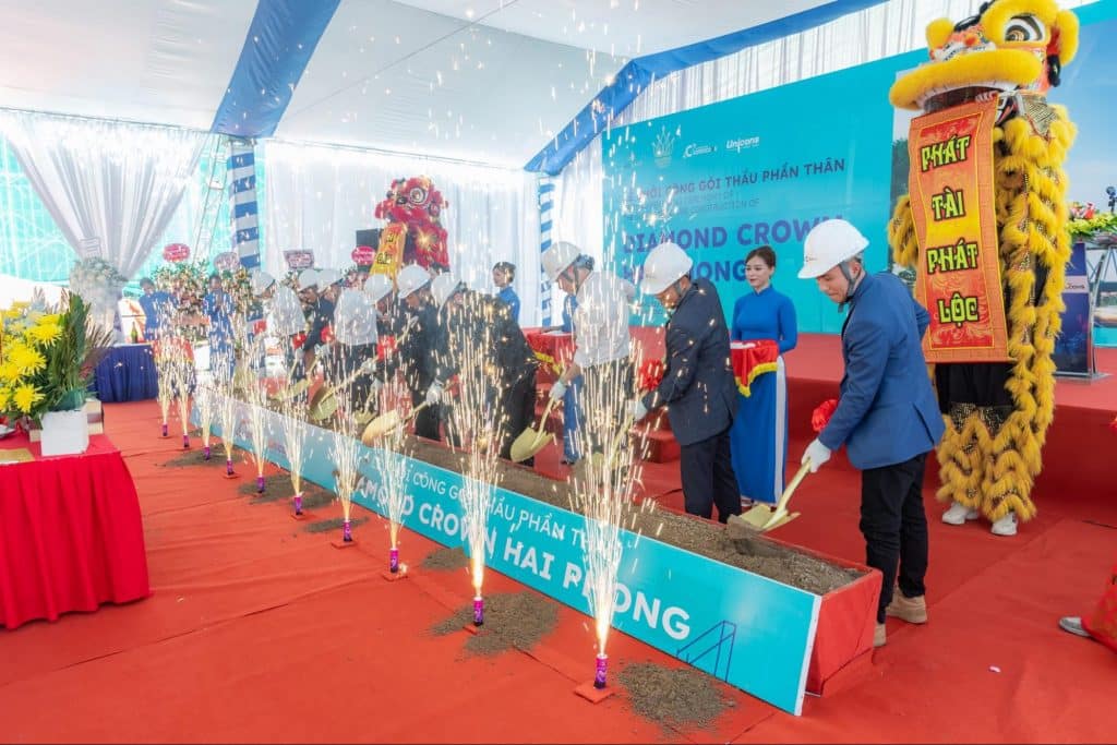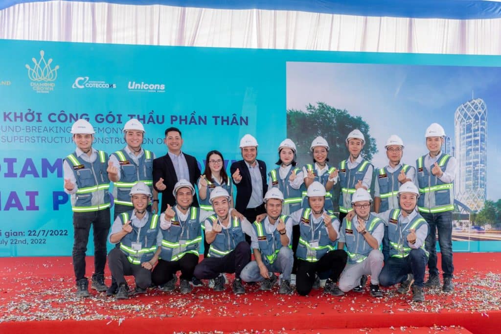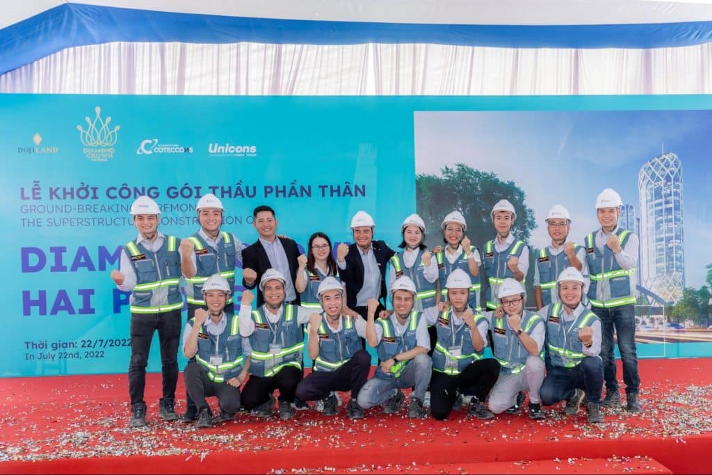 Sáng ngày 22/07/2022, lễ khởi công gói thầu phần thân Diamond Crown Hải Phòng do Công ty TNHH Đầu tư BĐS DOJI LAND làm chủ đầu tư và Công ty cổ phần xây dựng Coteccons là tổng thầu đã diễn ra trong không khí đầy tự hào, khát vọng về một giấc mơ kim cương, tiến đến một kỷ nguyên mới cho ngành xây dựng Việt Nam.