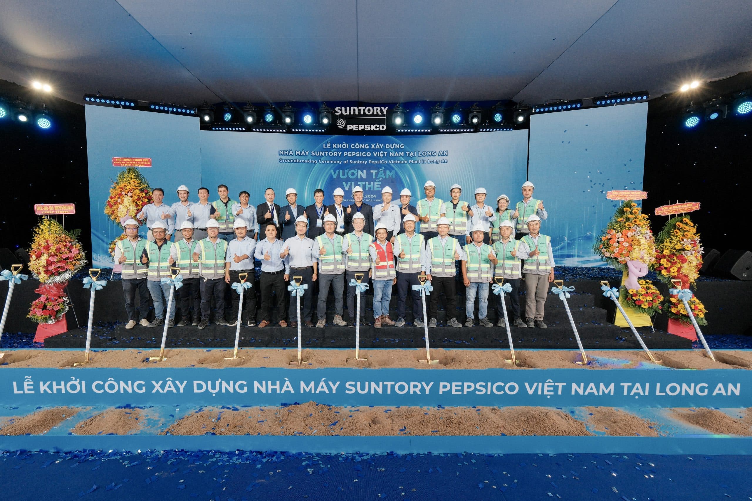 Sau quá trình đấu thầu minh bạch, chặt chẽ và chuyên nghiệp từ Chủ đầu tư SPVB, vào tháng 4/2024, Coteccons vinh dự khi chính thức được chọn là Tổng thầu thiết kế và thi công toàn dự án Nhà máy Suntory PepsiCo tại Khu công nghiệp Hựu Thạnh, Xã Hựu Thạnh, Huyện Đức Hòa, Tỉnh Long An. Với vai trò tổng thầu, Coteccons đảm nhận khu vực nhà máy, khu vực hành chính – dịch vụ, khu vực xây dựng kỹ thuật và các tiện ích hỗ trợ khác. Đây là nhà máy thứ 6 của Suntory PepsiCo và được xem là nhà máy có quy mô lớn nhất và hiện đại nhất của tập đoàn trong khu vực châu Á – Thái Bình Dương tính đến thời điểm hiện tại với diện tích sử dụng khoảng 20 hecta, tổng vốn đầu tư hơn 300 triệu USD, công suất dự kiến lên tới 800 triệu lít mỗi năm khi đi vào hoạt động chính thức.